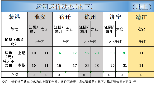 运河运价分析主要基于具有行业一定权威性的多家船东提供出来的运价数据,仅供参考。