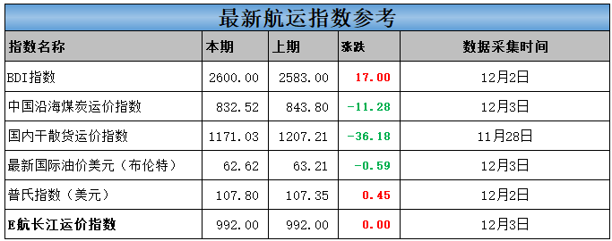 正值年度煤炭交易大会关键时点,市场观望情绪依然存在。本次影响我国的冷空气很快减弱,沿海电厂日耗增长缓慢,整体补库压力不强,采购仍以长协煤及性价比更高的进口为主。随着年底非煤货种拉运需求将逐步转弱,近期航运将保持基本维稳状态运行,仍需关注天气和企业生产的相关变化。