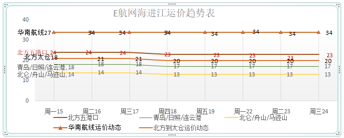 海进江运价分析主要基于具有行业一定权威性的多家船东提供出来的运价数据,仅供参考。
