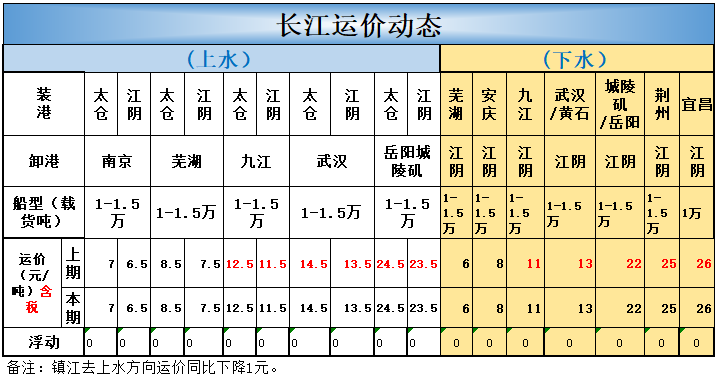 长江运价分析主要基于具有行业一定权威性的多家船东提供出来的运价数据,仅供参考。