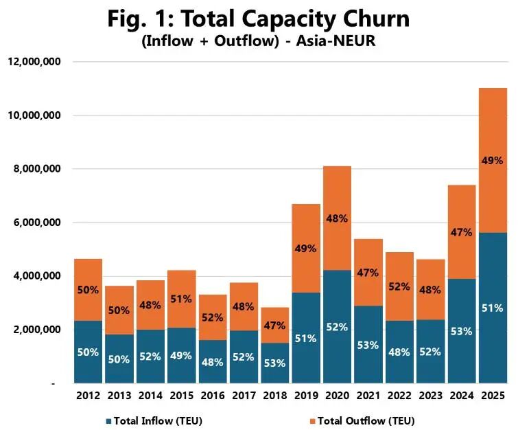 2025年的数据显示,航运市场出现了重大结构性变化,承运人从稳定的船舶班期安排转向频繁、高强度的运力调整。