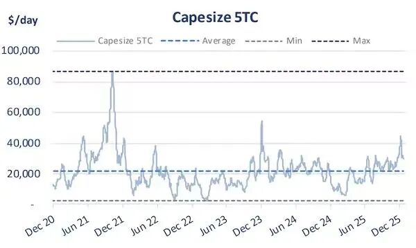 航运经纪商 Xclusiv 最新发布的周度报告指出,2025年底,干散货市场并非依靠需求端的爆发式增长,而是在船舶利用率趋紧、运力节奏错配以及局部摩擦因素叠加下,将微小的变化转化为价格的大幅波动。