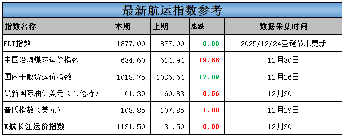 当天最新航运相关指数