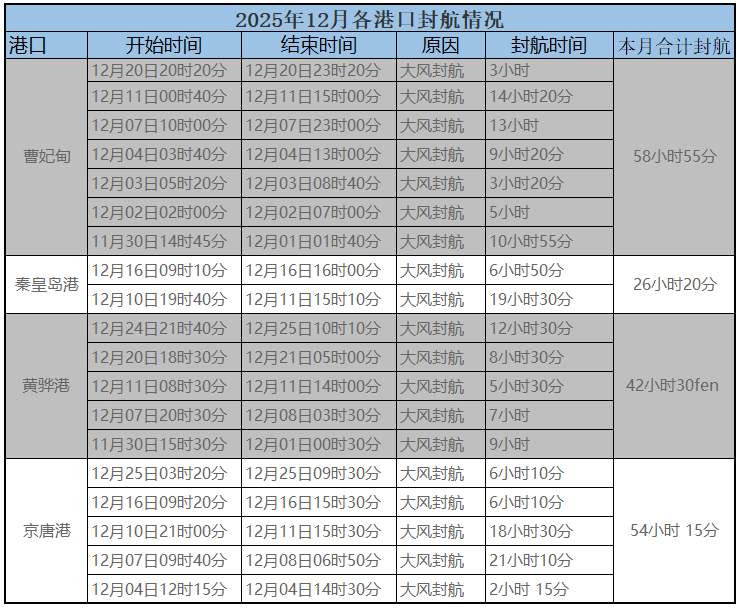 2025年12月30日,近日,北方各大港口暂无封航。