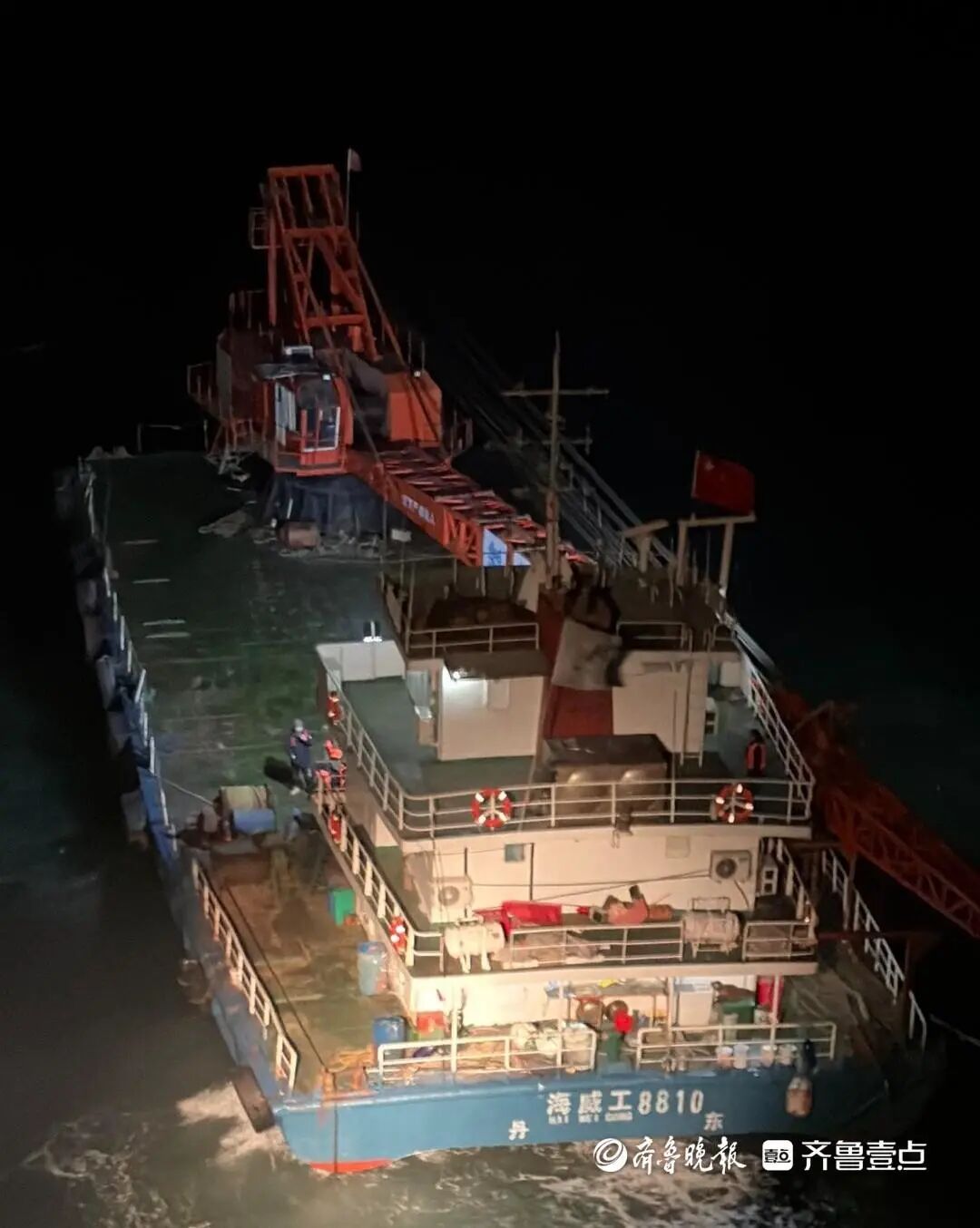 10日凌晨,交通运输部北海救助局接到辽宁省海上搜救中心险情通报,施工船“海威工8810”在黄海北部水域被渔网缠绕,失去动力,在大风浪中随时可能倾覆,9名船员身陷险境。