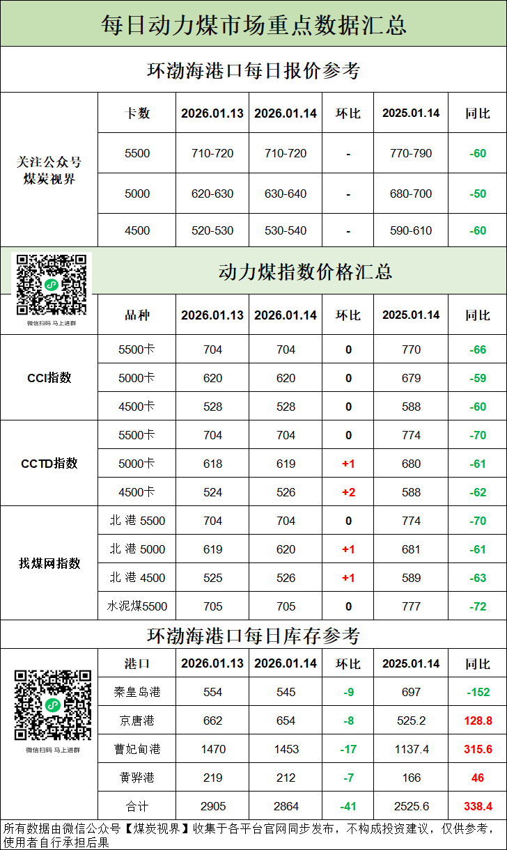 动力煤市场日评(2026年1月14日)