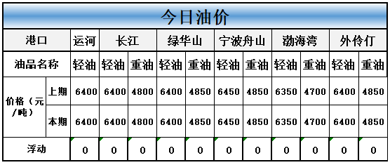 今天长江运河轻油价格和上期比均无变动。
