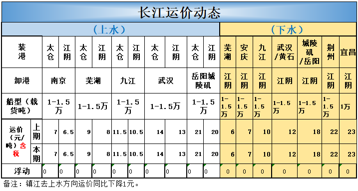 长江下水运价: