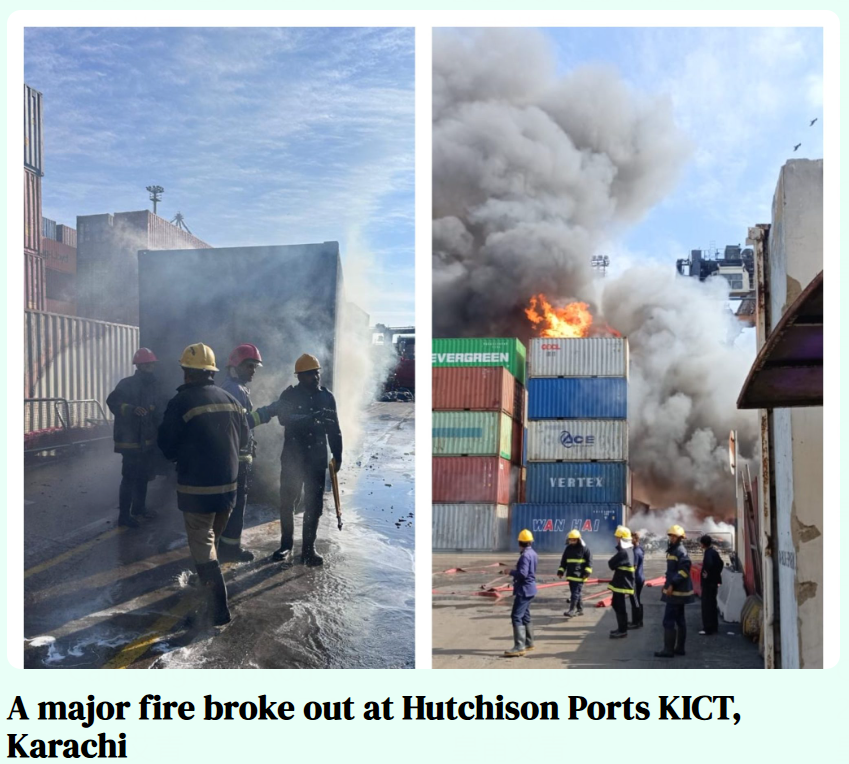 1月16日,巴基斯坦卡拉奇国际集装箱码头(KICT)发生火灾。救援队发言人表示,当天下午13:45左右,中央控制室接到消息,有一集装箱着火。“是一个装有电气设备、干化学品和锂电池的集装箱自燃引发了火灾,火势蔓延至周围19个装有电池、衣物和其他商品的集装箱。”他补充说,20个集装箱完全被损毁。