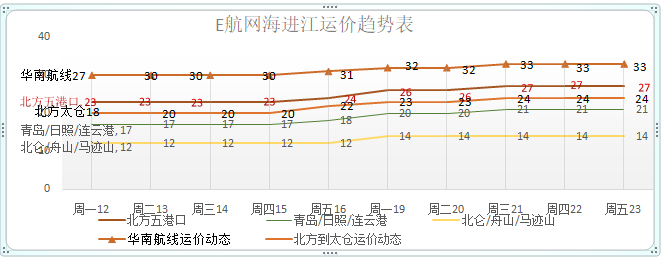 海进江运价分析主要基于具有行业一定权威性的多家船东提供出来的运价数据,仅供参考。