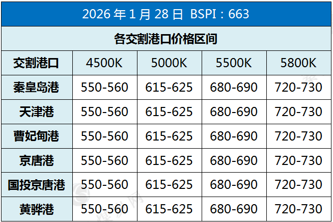 【2026.1.27】月末派船不足 沿海煤炭运价弱势下行