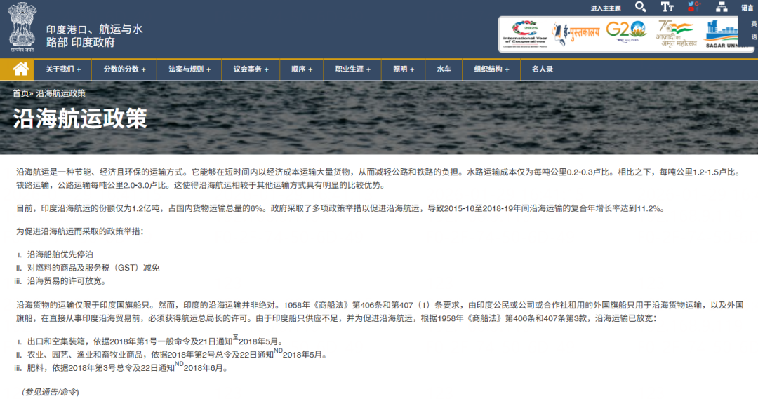 印度政府最近撤销了2018年所颁布的沿海航运政策。