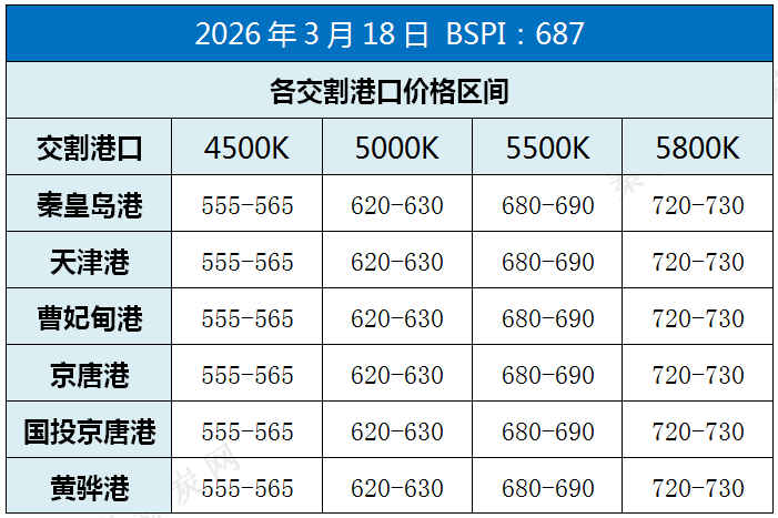 【数据速递】3月18日环渤海六港煤炭价格