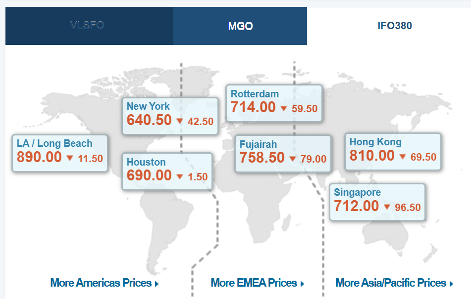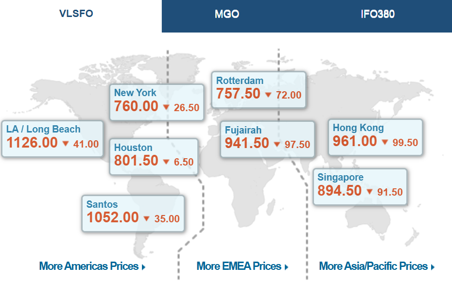与此同时,燃油市场本身也处于剧烈波动周期。根据Ship & Bunker最新评估,自今年1月以来,全球平均船用燃油价格已实现翻倍增长。其中,低硫燃料油(VLSFO)价格已升至约1022.5美元/吨,高硫燃料油(HSFO)约为805.5美元/吨.