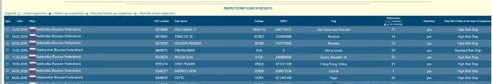 根据东京备忘录官方发布的俄罗斯港口国监督检查数据,2026年2月,俄罗斯 PSC 全港累计开展PSC检查95 艘次,其中零缺陷报告 13 份,占比仅仅13.7%,直接滞留的船舶9 艘,滞留率9.5%,被扣的船舶累计被开具缺陷180 项,滞留缺陷就有 59个,平均每艘被扣船舶的滞留缺陷6.6个,果真是量大管饱。