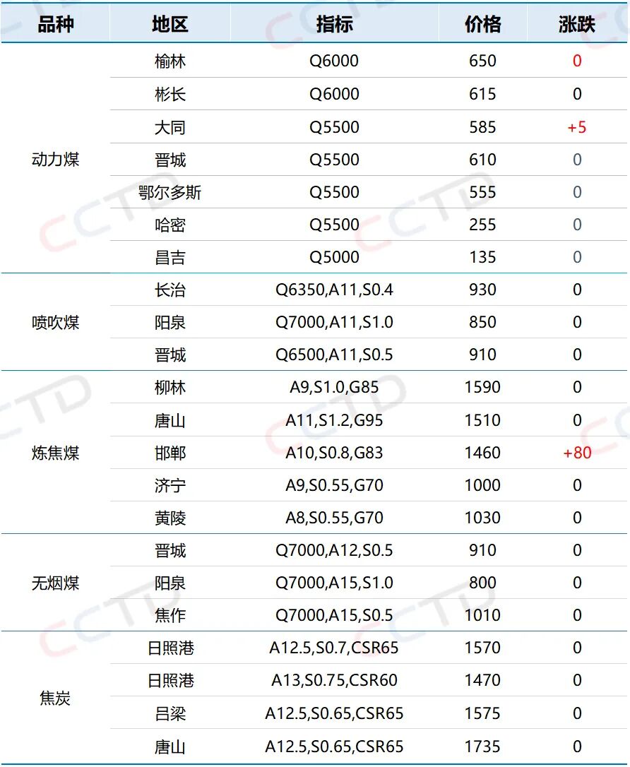 今日主要煤炭价格…