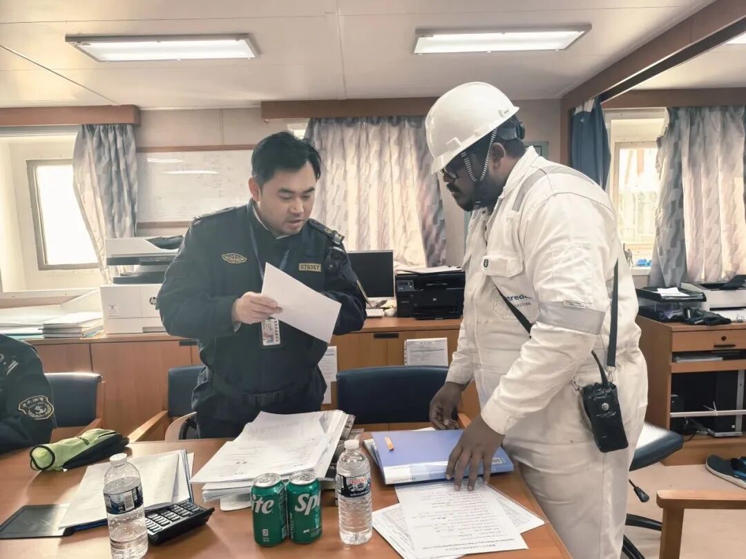 近日;嘉兴海事局乍浦海巡执法大队执法人员依据“智慧海事”监管平台风险研判;对停泊于乍浦港辖区的“A”轮开展登轮检查;在核验船舶防污染文书、燃油转换记录后;执法人员重点对该轮重油日用柜燃油进行现场取样;使用船舶燃油硫含量快检设备进行初步筛查;结果显示硫含量超过限值标准;