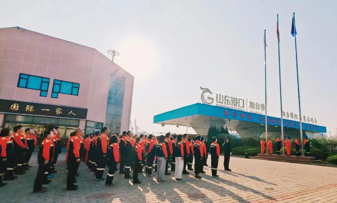 4月1日清晨,山东港口烟台港国际集装箱公司举行升旗仪式,宣布
