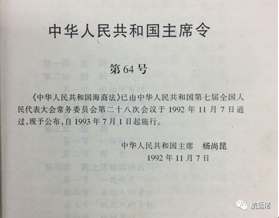 目前使用的《中华人民共和国海商法》,版本还是由中华人民共和国第七届全国人民代表大会常务委员会第二十八次会议于1992年11月7日通过的,自1993年7月1日起施行,至今整整26个年头了。