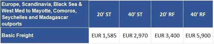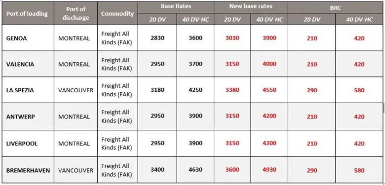 从1月1日起,这家位于马赛的承运人还将对干箱,冷藏箱,敞开式集装箱,平板架和托运人拥有的集装箱(SOC)实施以下FAK费率。