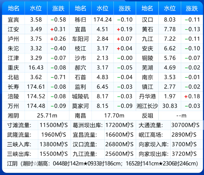 今天大通流量为30700,和上期比继续降低。长江下游水位也持续下行,10月下旬,长江水位将开始进入枯水季节。今后运价可能逐渐会受水位降低到影响。