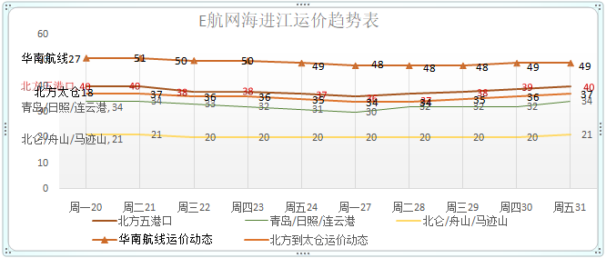 海进江运价分析主要基于具有行业一定权威性的多家船东提供出来的运价数据,仅供参考。