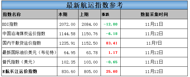 今日沿海运价涨跌