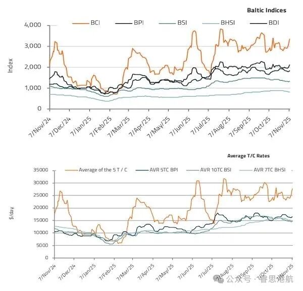 Parganas先生补充道:“从中国方面来看,钢厂对这一环境的应对方式对航运至关重要。在下游需求疲软且官方政策仍抑制过度产出的背景下,钢铁企业利润微薄且定价权有限。在此情况下,许多钢厂刻意降低铁矿石原料的品质等级,拼凑‘足够好’的矿料混合,而非追求优质原料。铁含量较低的矿粉、含高硅铝的矿石,以及国内精矿的作用日益凸显,都是这一趋势的体现。关键不在于从高炉中榨取最后一个百分点的产能,而在于控制现金成本。问题在于,低品位矿石会带来实际损耗:每吨矿石含铁量减少、脉石增多,意味着要生产相同数量的铁水,需要处理、烧结和熔炼更多原料。额外的炉渣需要更多熔剂和能源,而更高的杂质负荷迫使钢厂为相同的钢铁产量付出更多努力。从纯粹的航运角度来看,这正是表观矛盾开始化解的地方:当平均每吨矿石的品质下降时,维持高炉运转所需的矿石吨数不会与粗钢产量一对一地同步下降。即使官方钢铁产量略有下降,矿石进口量仍可保持每月超1亿吨,港口库存也能重建,这与结构性走弱的钢铁市场并不矛盾。对船东和租家而言,这种‘品质效应’是一个低调却重要的支撑因素。中国钢铁产量略有下降,但每吨产出消耗的矿石量大幅增加,这对来自澳大利亚和巴西的长途铁矿石需求形成了有力拉动。向中品位基准的转变、Pilbara关键矿种的降级以及更大折扣低品位矿粉的兴起,都指向同一个方向:需要运输更大的实物量,才能向中国钢厂交付相同的铁单位。这有助于解释为何尽管钢铁市场趋弱且房地产和基础设施疲软的新闻屡见不鲜,铁矿石流量仍保持强劲,好望角型散货船板块的利用率也维持在较高水平。”