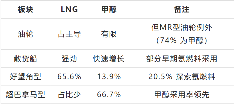 相比之下,散货船板块的(双燃料技术)采用率明显更高,尤其是在大型船舶中表现更为突出。