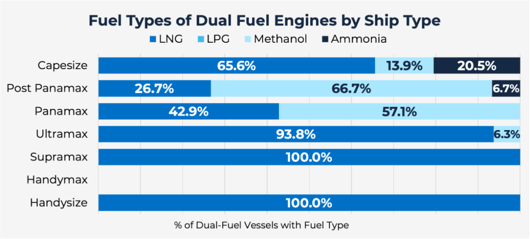 好望角型:LNG 65.6% | 甲醇 13.9% | 氨燃料探索意向 20.5%