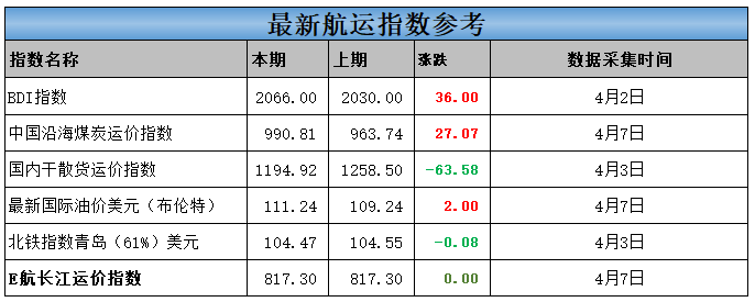 综合供需基本面来看,短期内运价继续再底部徘徊,预计下周随着汛期水位渐涨,工业企业复工复产提速、电厂春季补库需求逐步释放,长江运价有望企稳上涨。